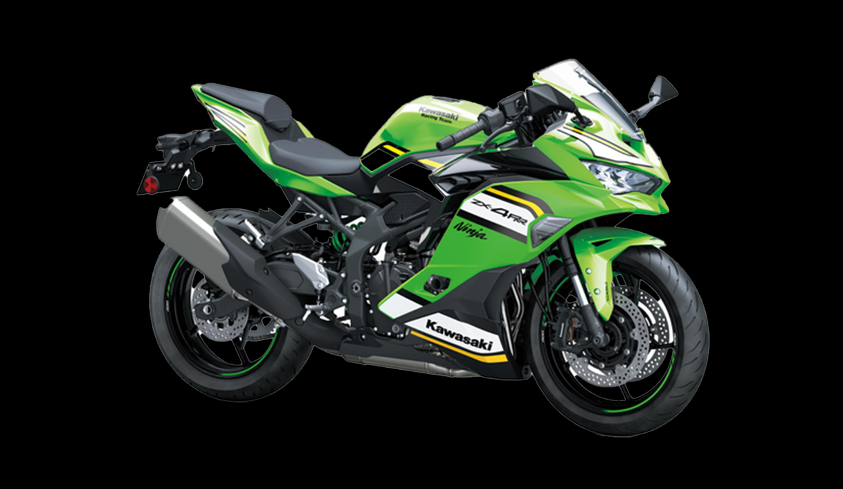 revolutionary supersport model. The Ninja ZX-4R mounts a 399 cc In-Line Four engine with class-leading performance in a compact chassis with proportions similar to smaller-displacement models. On the track or on the street, experiencing the exhilaration of the Ninja ZX-4R’s unprecedented power, intoxicating high-rpm wail, and its sharp, nimble handling will surely awaken the dormant supersport within you.
